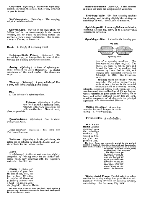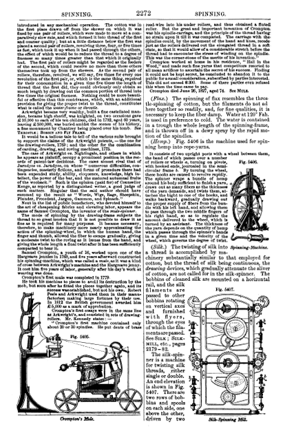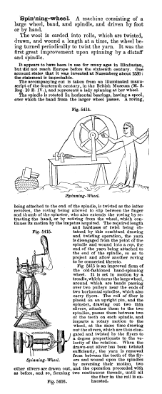 Spinning, ---. Knight's American Mechanical Dictionary, 1876, 4 pages. Posted September 11, 2003. SAMPLE PAGE. File size 820 KB PDF