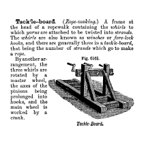 Tackle Board, ---. Knight's American Mechanical Dictionary, 1876, 1 page. Posted September 12, 2003. SAMPLE PAGE. File size 412 KB PDF