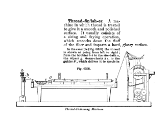 Thread Finisher, ---. Knight's American Mechanical Dictionary, 1876, 1 page. Posted September 12, 2003. SAMPLE PAGE. File size 408 KB PDF
