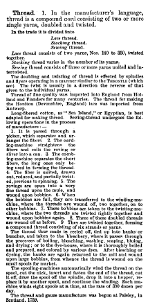 Thread, ---. Knight's American Mechanical Dictionary, 1876, 1 page. Posted September 12, 2003. SAMPLE PAGE. File size 432 KB PDF