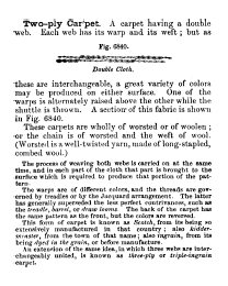 Two-Ply Carpet, ---. Knight's American Mechanical Dictionary, 1876, 1 page. Posted September 13, 2003. SAMPLE PAGE. File size 416 KB PDF