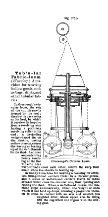 Tubular Fabric Loom, ---. Knight's American Mechanical Dictionary, 1876, 1 page. Posted September 13, 2003. SAMPLE PAGE. File size 420 KB PDF