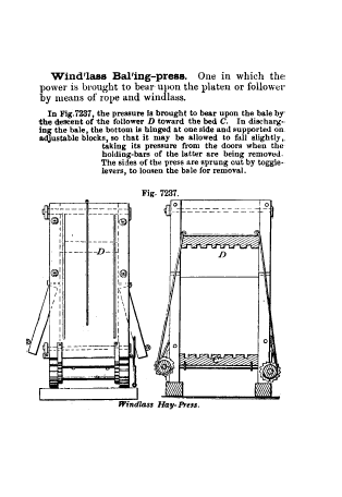 Windlass Bailing Press, ---. Knight's American Mechanical Dictionary, 1876, 1 page. Posted September 26, 2004. SAMPLE PAGE. File size 408 KB PDF
