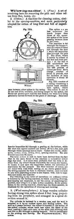 Willowing Machine, ---. Knight's American Mechanical Dictionary, 1876, 1 page. Posted September 13, 2003. SAMPLE PAGE. File size 476 KB PDF
