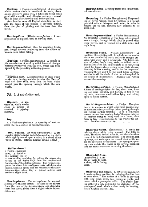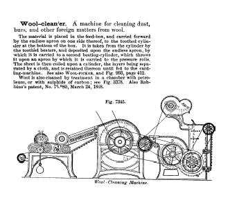 Wool Cleaner, ---. Knight's American Mechanical Dictionary, 1876, 1 page. Posted September 13, 2003. SAMPLE PAGE. File size 424 KB PDF