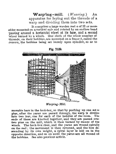 Warping Mill, ---. Knight's American Mechanical Dictionary, 1876, 1 page. Posted September 14, 2003. SAMPLE PAGE. File size 424 KB PDF