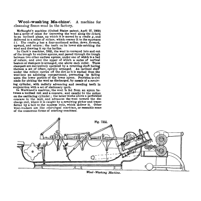 Wool-Washing Machine, ---. Knight's American Mechanical Dictionary, 1876, 1 page. Posted September 26, 2004. SAMPLE PAGE. File size 432 KB PDF