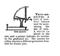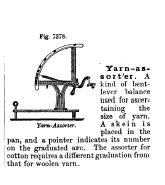 Yarn Assorter, ---. Knight's American Mechanical Dictionary, 1876, 1 page. Posted September 14, 2003. SAMPLE PAGE. File size 400 KB PDF