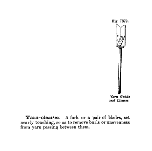 Yarn Clearer, ---. Knight's American Mechanical Dictionary, 1876, 1 page. Posted September 26, 2004. SAMPLE PAGE. File size 396 KB PDF