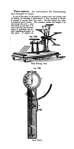 Yarn Tester, ---. Knight's American Mechanical Dictionary, 1876, 1 page. Posted September 14, 2003. SAMPLE PAGE. File size 428 KB PDF