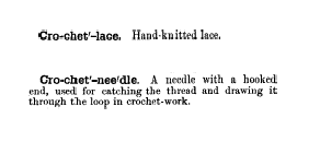 [Crochet], ---. Knight's American Mechanical Dictionary, 1876, 1 page. Note: Collected short articles. Posted August 4, 2004. SAMPLE PAGE. File size 396 KB PDF