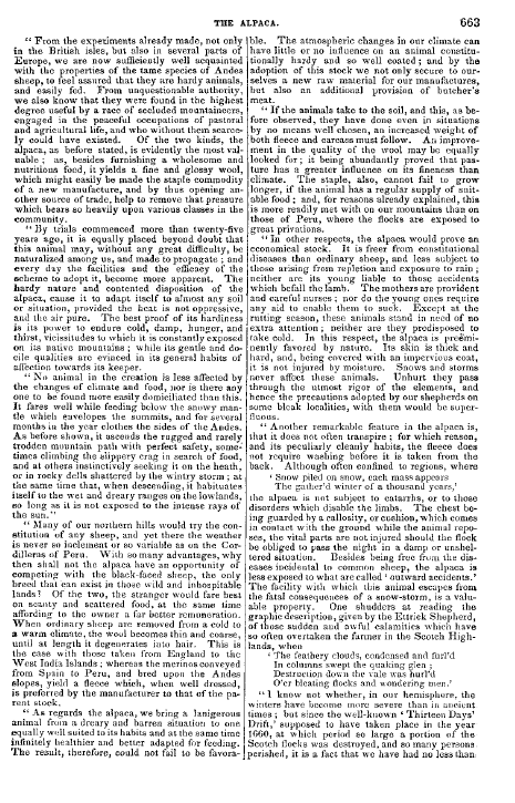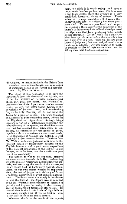 Alpaca, ---. Living Age, Vol. 2, No. 23 (October 19, 1844), 3 pages. CD (HWDA10). Posted May 5, 2004. SAMPLE PAGE. File size 544 KB PDF