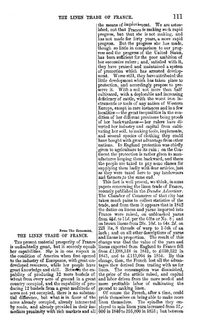 Linen Trade of France, ---. Living Age, 2 pages. CD (HWDA10). Posted May 3, 2004. SAMPLE PAGE. File size 476 KB PDF