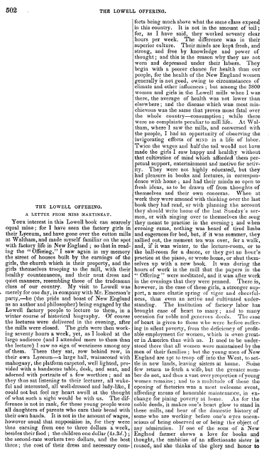 Lowell Offering, Martineau, H. Living Age, Vol. 2, No. 20 (September 28, 1844), 2 pages. CD (HWDA11). Posted October 6, 2004. SAMPLE PAGE. File size 1 MB PDF