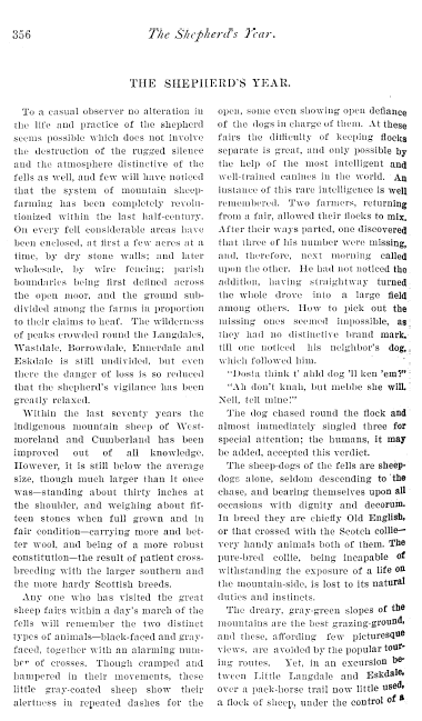 Shepherd's Year, Palmer, William T. Living Age, 1903, 11 pages. CD (HWDA07). Posted September 13, 2003. SAMPLE PAGE. File size 1 MB PDF