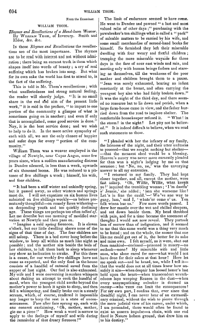 Rhymes and Recollections of a Hand-Loom Weaver, ---. Living Age, Vol. 2 (1844), 6 pages. CD (HWDA07). Posted January 6, 2004. SAMPLE PAGE. File size 2.3 MB PDF
