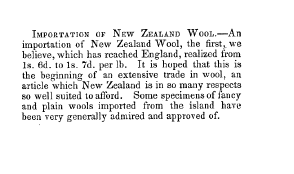 Importation of New Zealand Wool, ---. Living Age, Vol. 2, No. 19 (September 21, 1884), 1 page. CD (HWDA11). Posted October 6, 2004. SAMPLE PAGE. File size 408 KB PDF