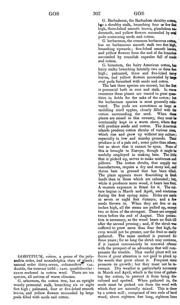 Gossypium, ---. London Encyclopaedia, 1829, 2 pages. Posted July 1, 2003. SAMPLE PAGE. File size 468 KB PDF