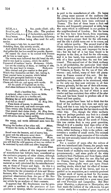Silk, ---. London Encyclopaedia, 1829, 15 pages. Posted June 24, 2003. SAMPLE PAGE. File size 2.1 MB PDF