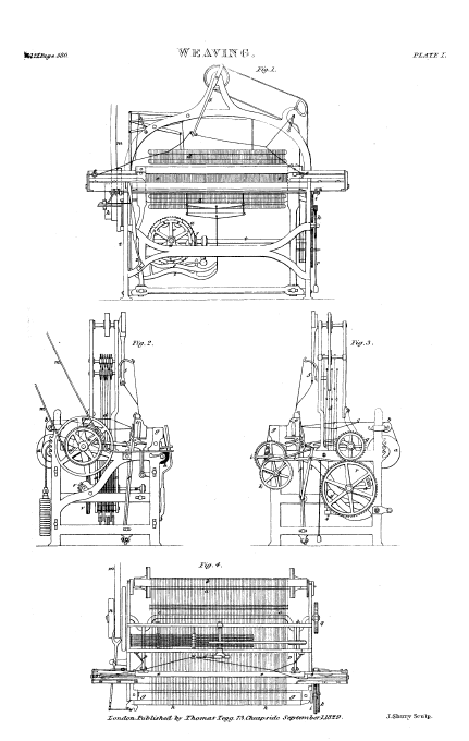 Weaving, ---. London Encyclopaedia, 1829, 6 pages. Posted June 18, 2003. SAMPLE PAGE. File size 892 KB PDF