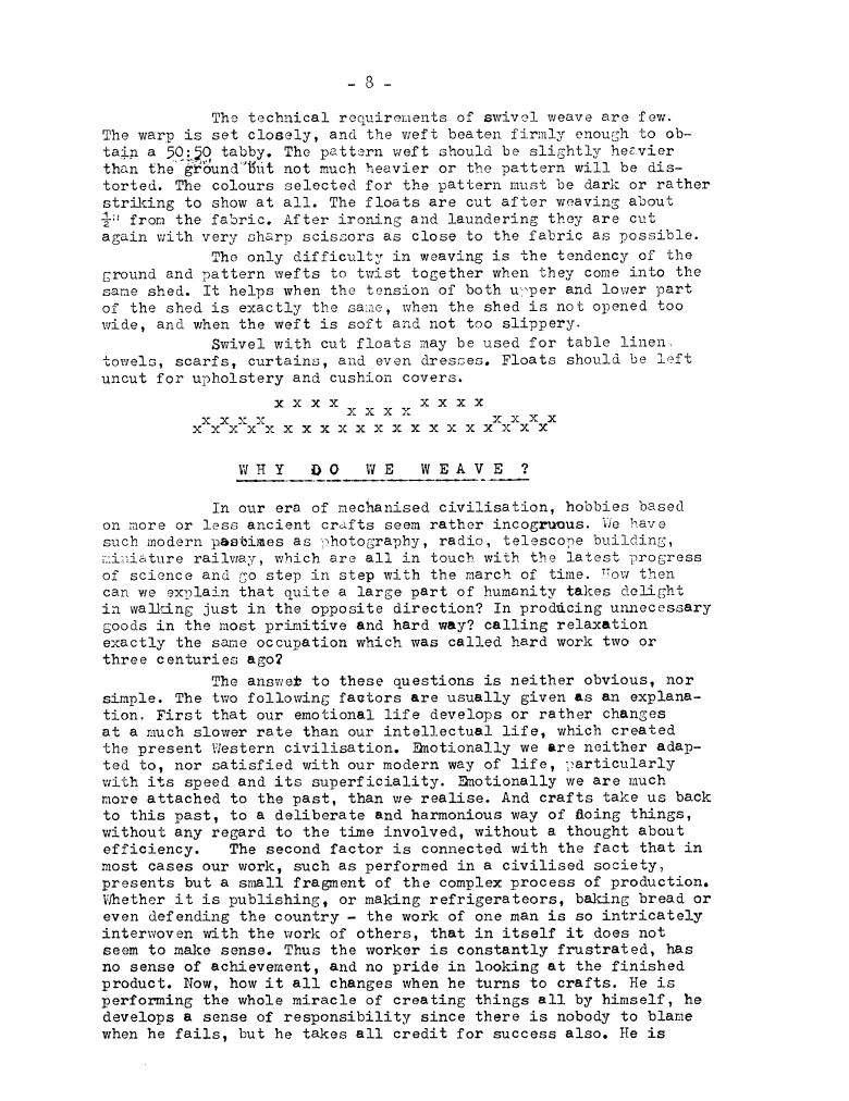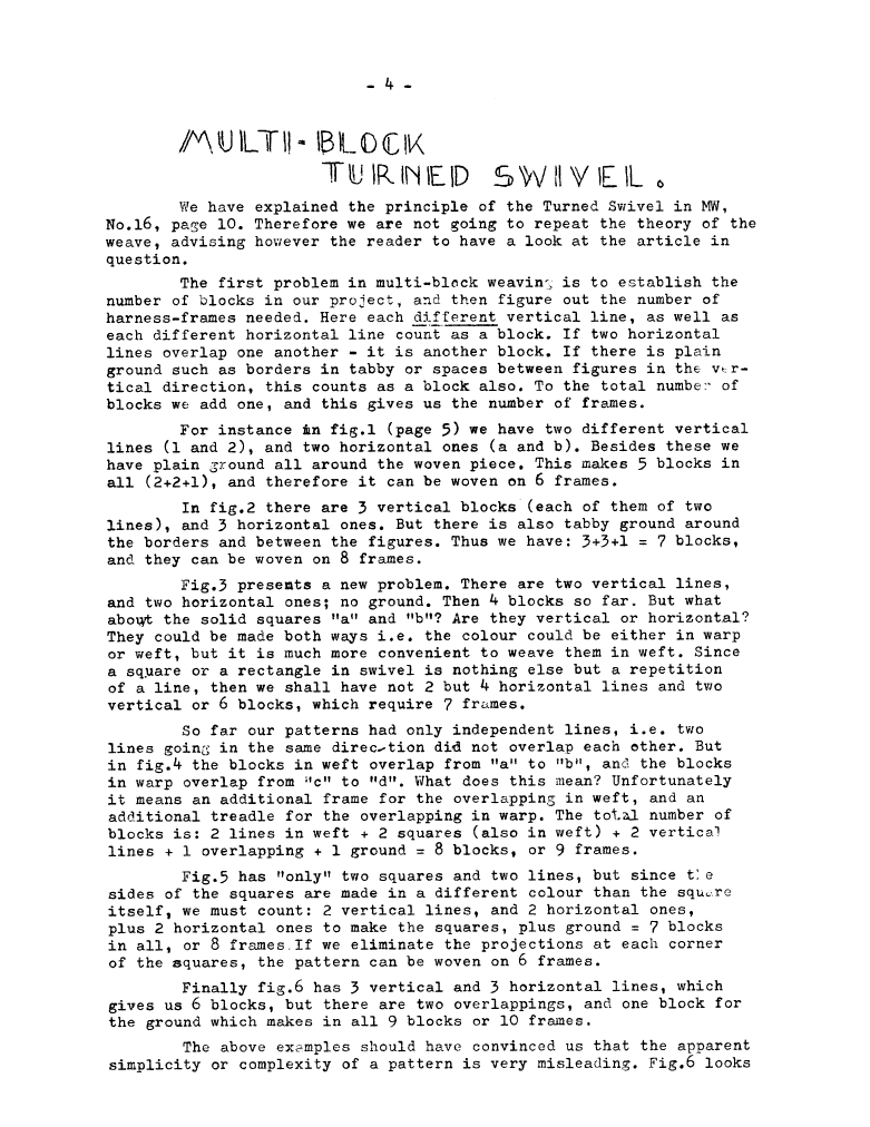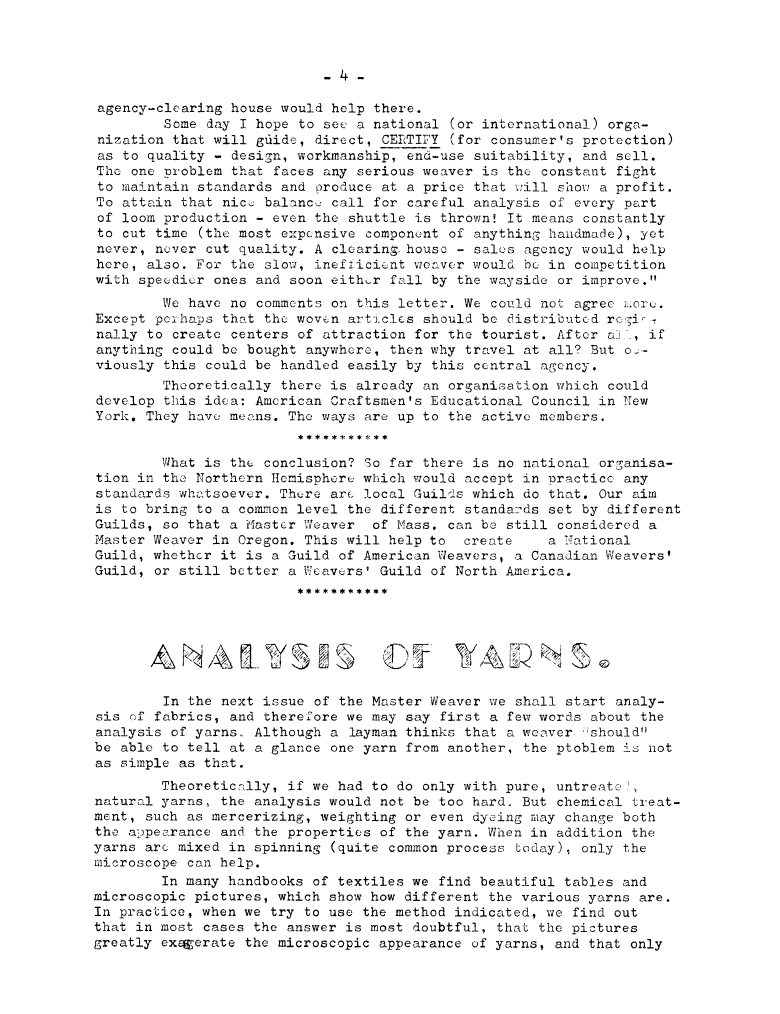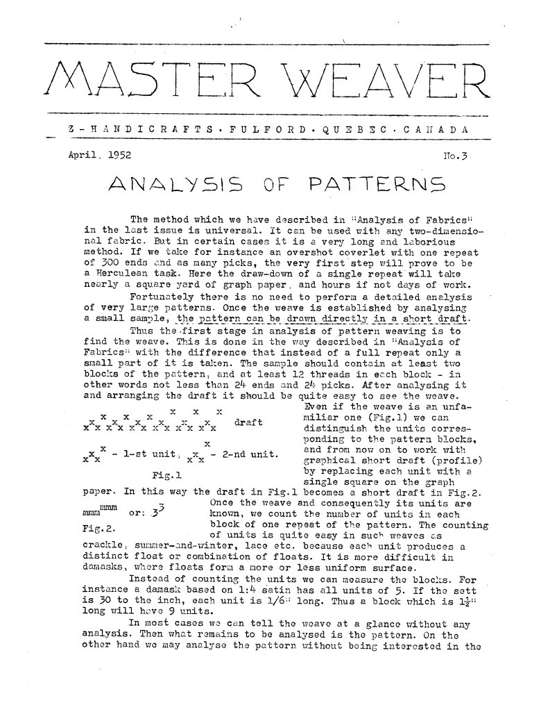 Analysis 4, ---. Master Weaver, No. 32 March 1957, 2 pages. Note: PDF provided by Judith Combs. By permission. Posted July 15, 2006. SAMPLE PAGE. File size 573 KB PDF