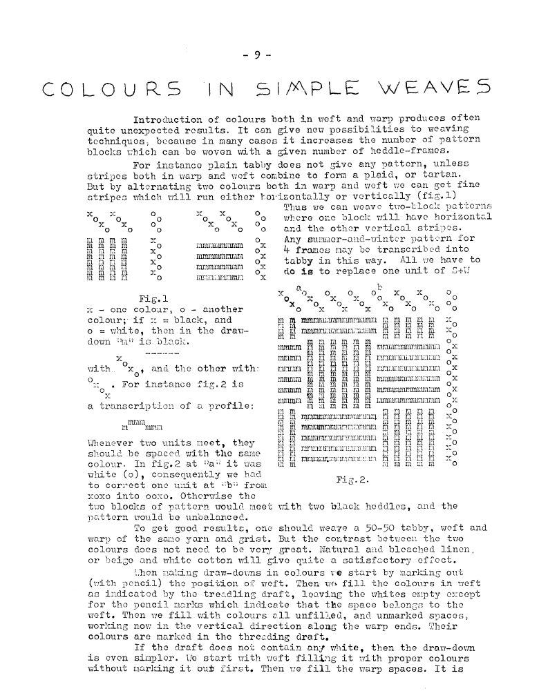 Colours in Simple Weaves, ---. Master Weaver, No. 5 August 1952, 4 pages. Note: PDF provided by Judith Combs. By permission. Posted July 15, 2006. SAMPLE PAGE. File size 752 KB PDF