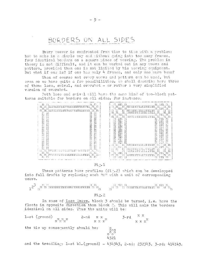 Borders on All Sides, ---. Master Weaver, No. 7 January 1953, 3 pages. Note: PDF provided by Judith Combs. By permission. Posted July 15, 2006. SAMPLE PAGE. File size 643 KB PDF