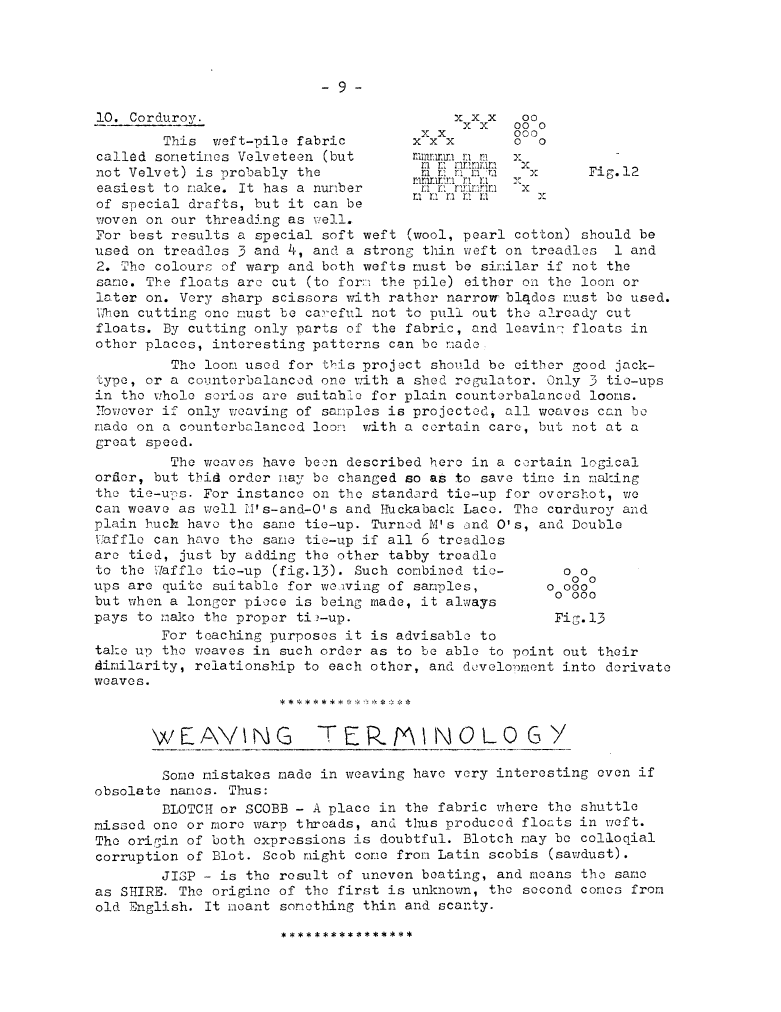 Weaving Terminology - Blotch, Scobb, Jisp, ---. Master Weaver, No. 9 May 1953, 1 page. Note: PDF provided by Judith Combs. By permission. Posted July 15, 2006. SAMPLE PAGE. File size 502 KB PDF