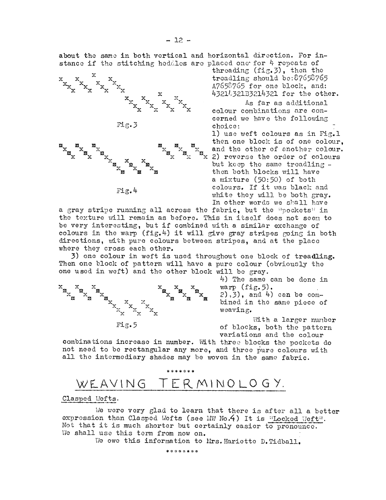 Weaving Terminology - Clasped Wefts, ---. Master Weaver, No. 10 July 1953, 1 page. Note: PDF provided by Judith Combs. By permission. Posted July 15, 2006. SAMPLE PAGE. File size 466 KB PDF
