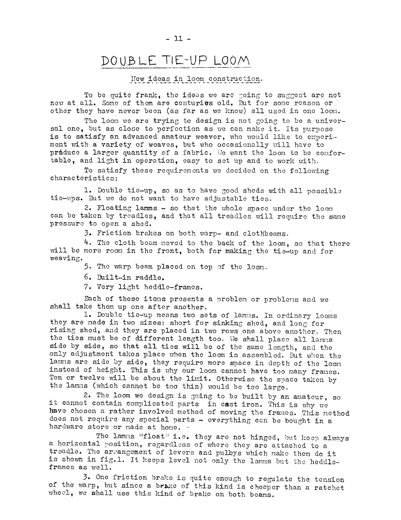 Double Tie-Up Loom - 1, ---. Master Weaver, No. 11 September 1953, 2 pages. Note: PDF provided by Judith Combs. By permission. Posted July 15, 2006. SAMPLE PAGE. File size 552 KB PDF
