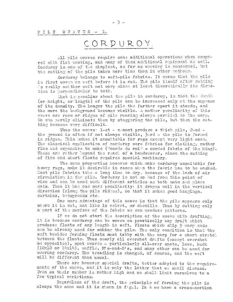 Colours in Corduroy, ---. Master Weaver, No. 15 May 1954, 3 pages. Note: PDF provided by Judith Combs. By permission. Posted July 15, 2006. SAMPLE PAGE. File size 662 KB PDF