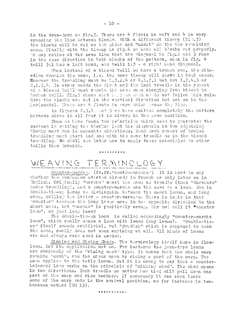 Weaving Terminology - Counter March, Sinking and Rising Sheds, ---. Master Weaver, No. 14 March 1954, 1 page. Note: PDF provided by Judith Combs. By permission. Posted July 15, 2006. SAMPLE PAGE. File size 493 KB PDF