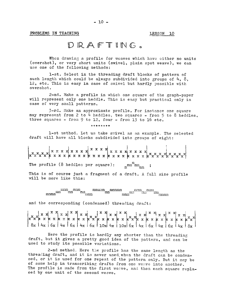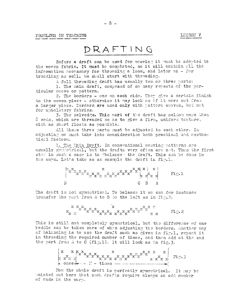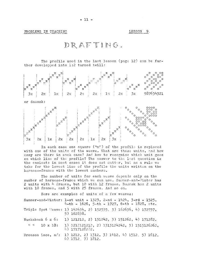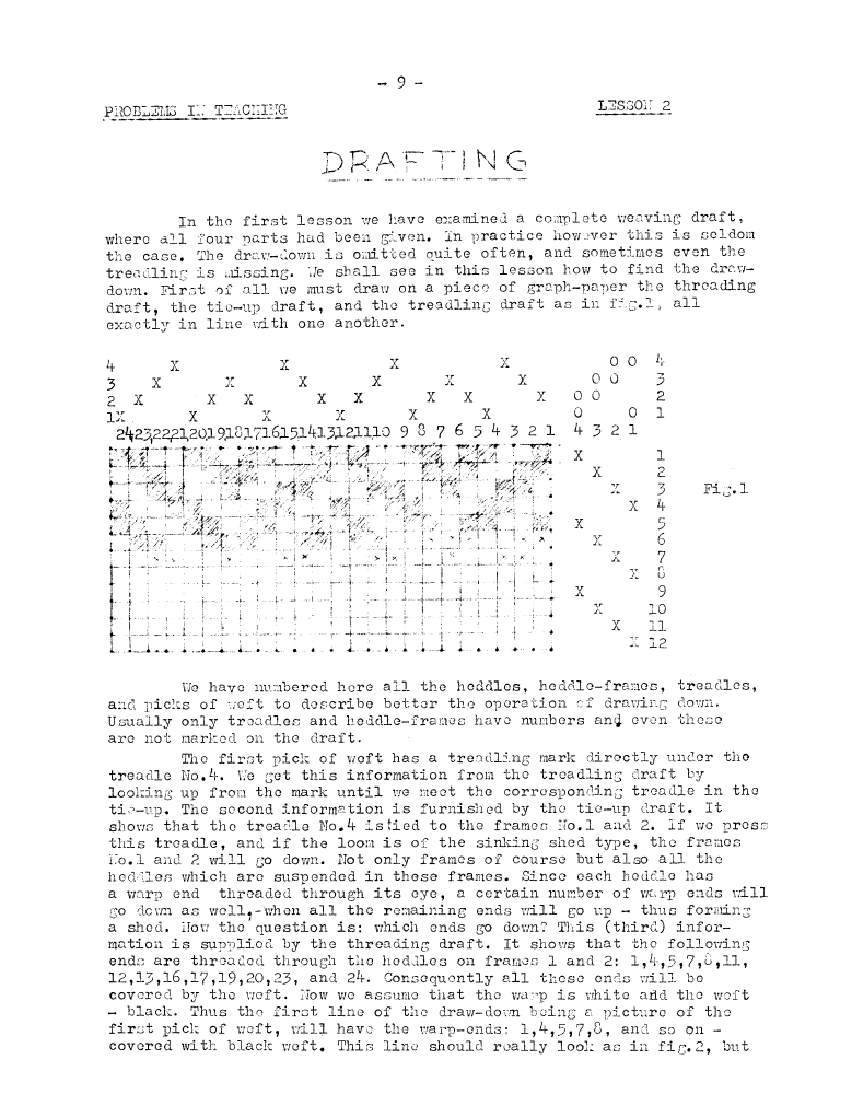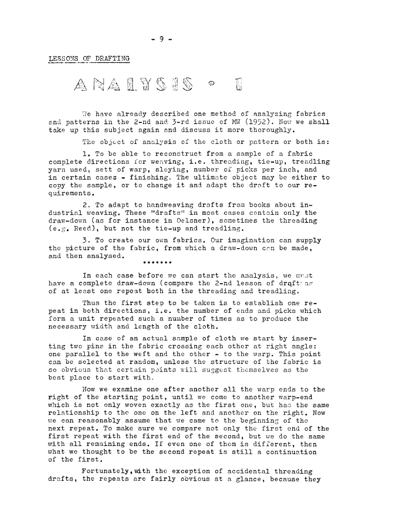 Lessons of Drafting Analysis 1, ---. Master Weaver, No. 28 July 1956, 3 pages. Note: PDF provided by Judith Combs. By permission. Posted July 15, 2006. SAMPLE PAGE. File size 713 KB PDF