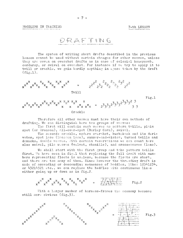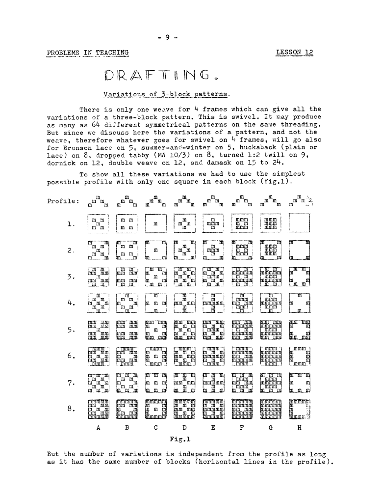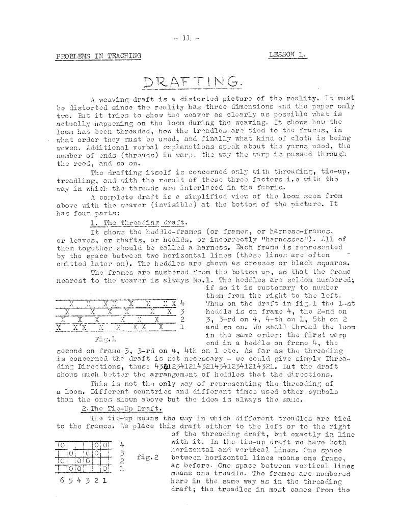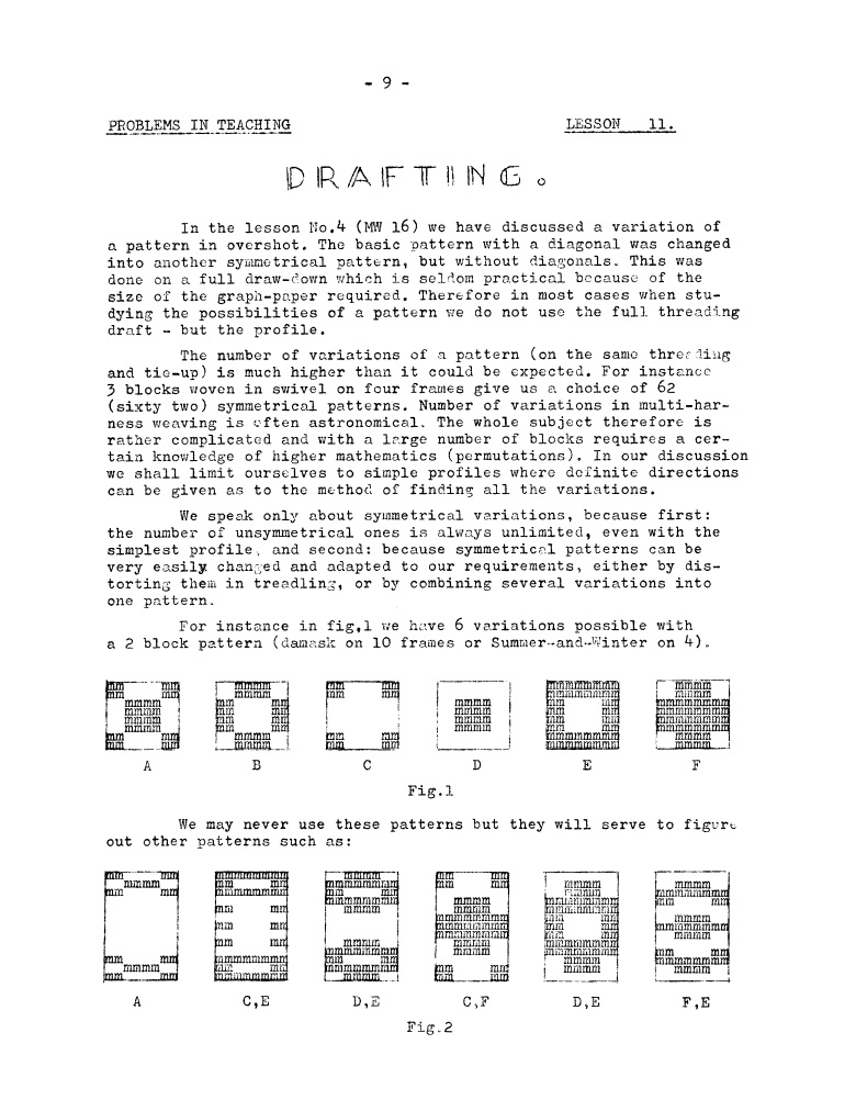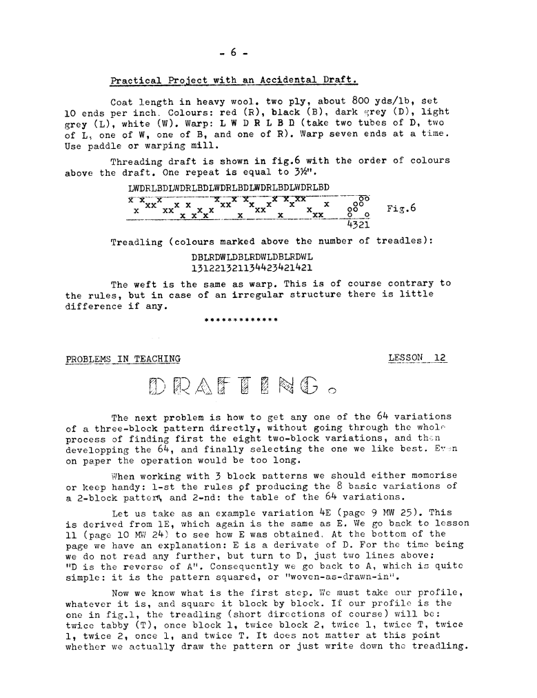 Lessons of Drafting Analysis 1, ---. Master Weaver, No. 28 July 1956, 3 pages. Note: PDF provided by Judith Combs. By permission. Posted July 15, 2006. SAMPLE PAGE. File size 713 KB PDF