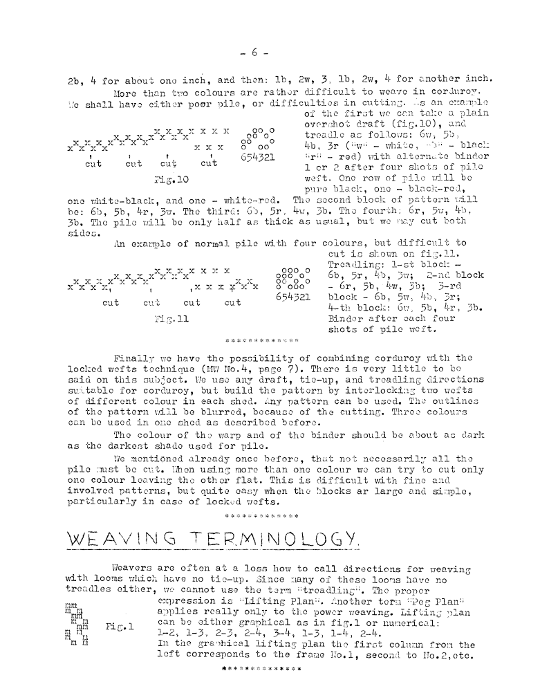 Weaving Terminology - Lifting Plan, ---. Master Weaver, No. 15 May 1954, 1 page. Note: PDF provided by Judith Combs. By permission. Posted July 15, 2006. SAMPLE PAGE. File size 499 KB PDF