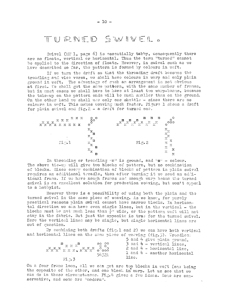 Turned Swivel, ---. Master Weaver, No. 16 July 1954, 3 pages. Note: PDF provided by Judith Combs. By permission. Posted July 15, 2006. SAMPLE PAGE. File size 681 KB PDF