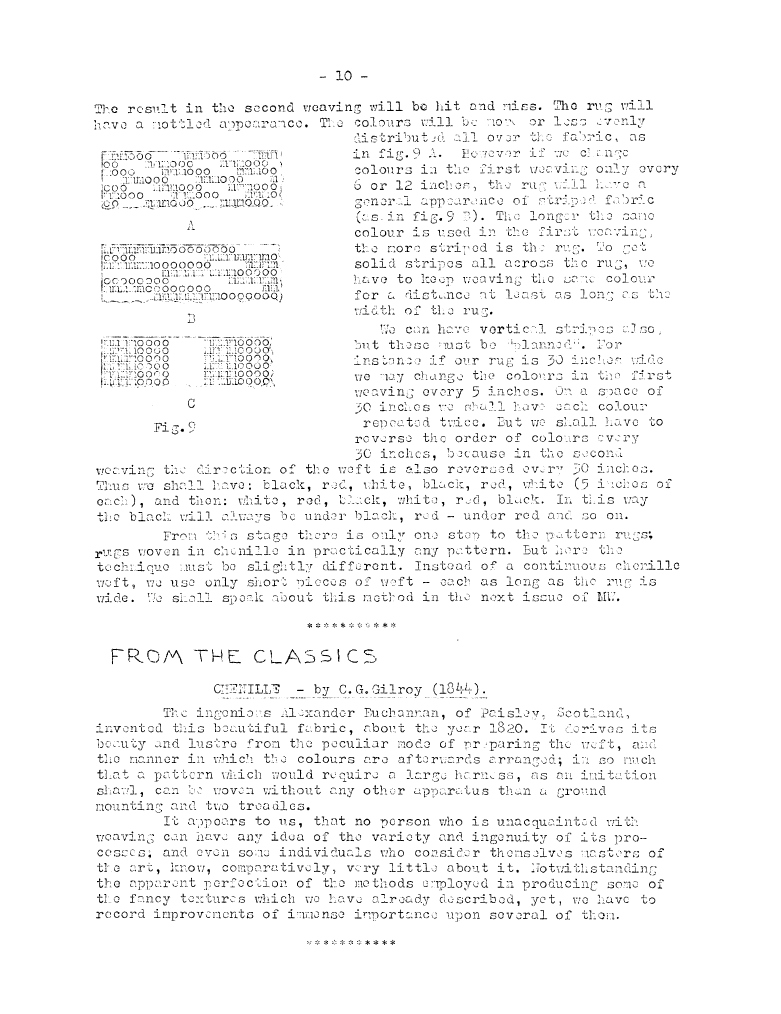 From the Classics. Chenille (1844), Gilroy, C. G.. Master Weaver, No. 19 January 1955, 1 page. Note: PDF provided by Judith Combs. By permission. Posted July 15, 2006. SAMPLE PAGE. File size 483 KB PDF