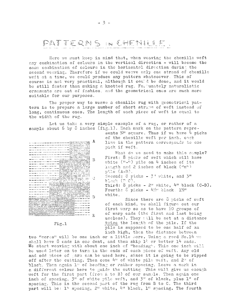 Information Service - Patterns in Chenille, ---. Master Weaver, No. 8 March 1953, 1 page. Note: PDF provided by Judith Combs. By permission. Posted July 15, 2006. SAMPLE PAGE. File size 521 KB PDF