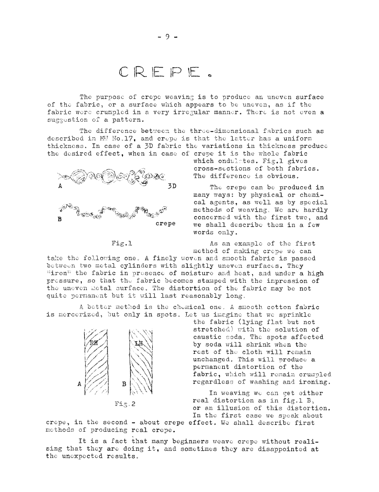 Crepe, ---. Master Weaver, No. 20 March 1955, 4 pages. Note: PDF provided by Judith Combs. By permission. Posted July 15, 2006. SAMPLE PAGE. File size 727 KB PDF