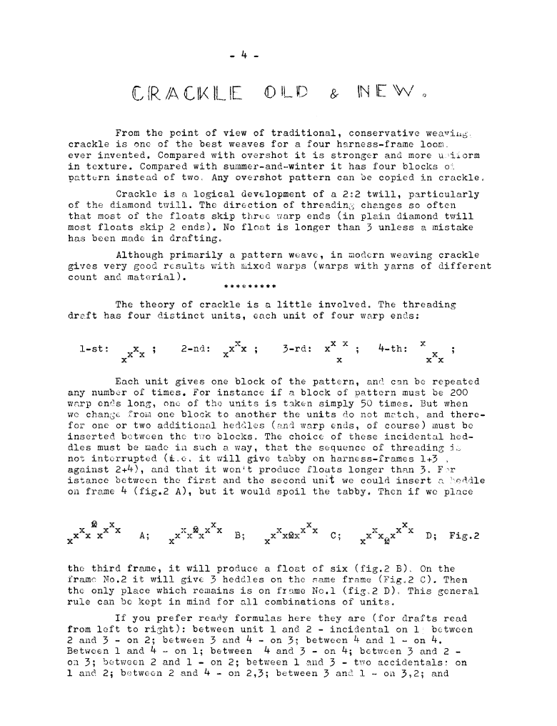 Crackle Old & New, ---. Master Weaver, No. 24 November 1955, 5 pages. Note: PDF provided by Judith Combs. By permission. Posted July 15, 2006. SAMPLE PAGE. File size 829 KB PDF