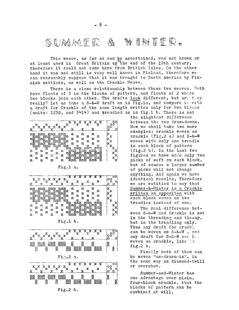 Summer & Winter, ---. Master Weaver, No. 27 May 1956, 5 pages. Note: PDF provided by Judith Combs. By permission. Posted July 15, 2006. SAMPLE PAGE. File size 810 KB PDF