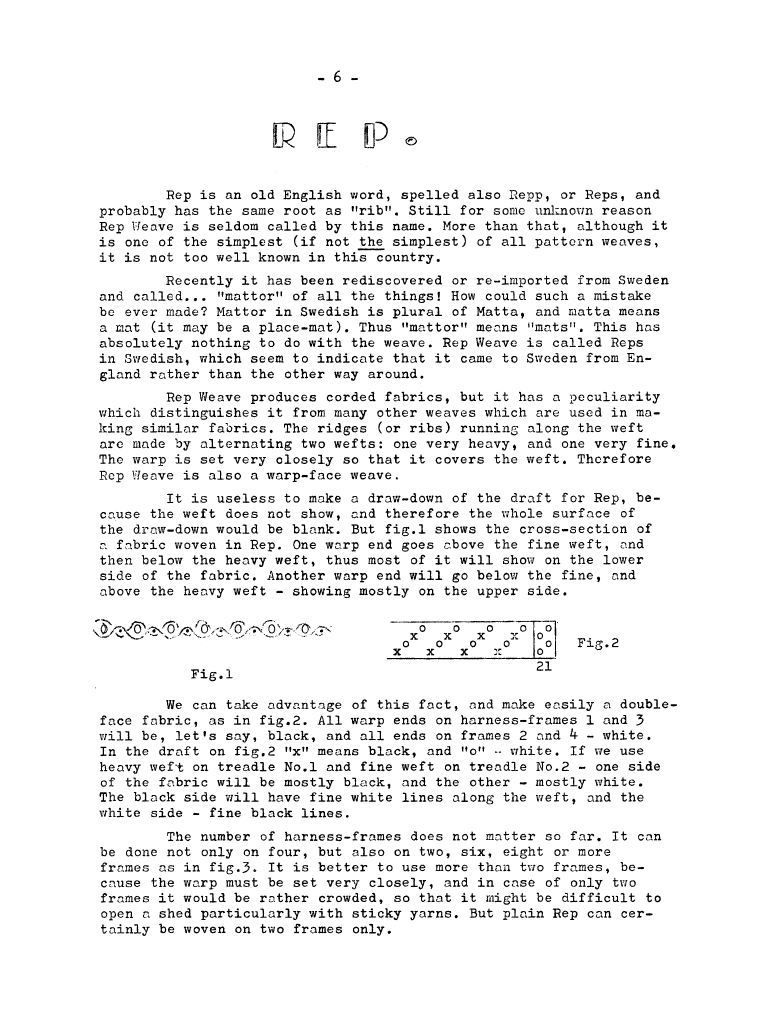 Analysis 2, ---. Master Weaver, No. 29 September 1956, 2 pages. Note: PDF provided by Judith Combs. By permission. Posted July 15, 2006. SAMPLE PAGE. File size 564 KB PDF
