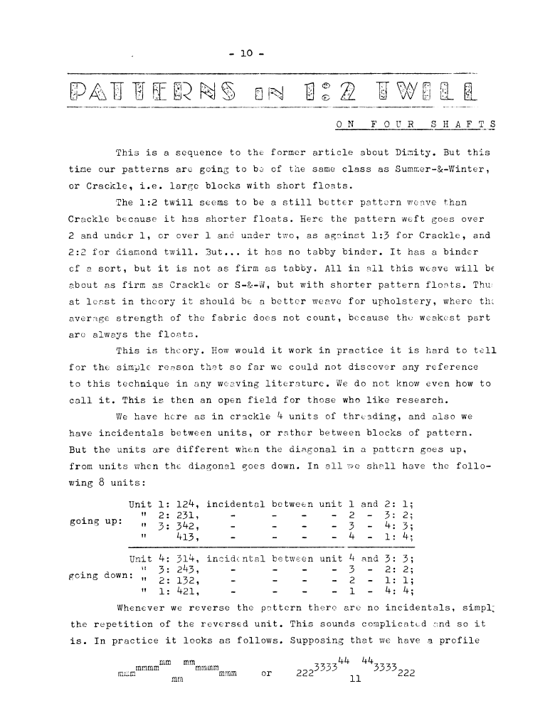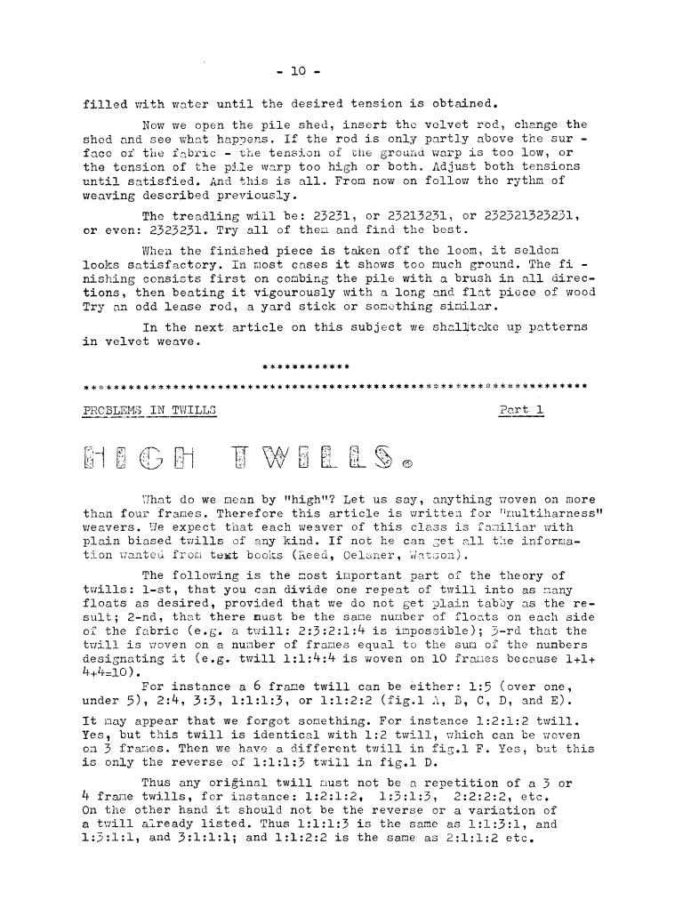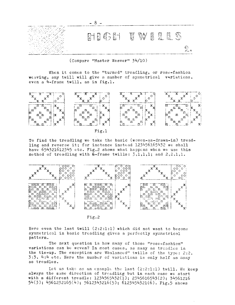 High Twills 2, ---. Master Weaver, No. 36 November 1957, 3 pages. Note: PDF provided by Judith Combs. By permission. Posted July 15, 2006. SAMPLE PAGE. File size 657 KB PDF