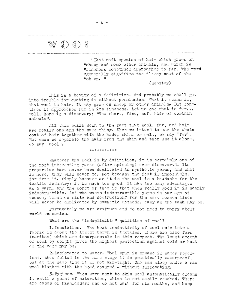 Wool, ---. Master Weaver, No. 36 November 1957, 3 pages. Note: PDF provided by Judith Combs. By permission. Posted July 15, 2006. SAMPLE PAGE. File size 692 KB PDF