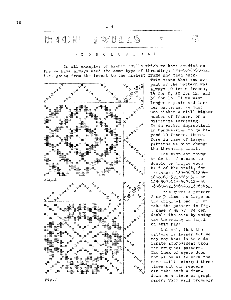 High Twills 4 (Conclusion), ---. Master Weaver, No. 38 March 1958, 2 pages. Note: PDF provided by Judith Combs. By permission. Posted July 15, 2006. SAMPLE PAGE. File size 634 KB PDF