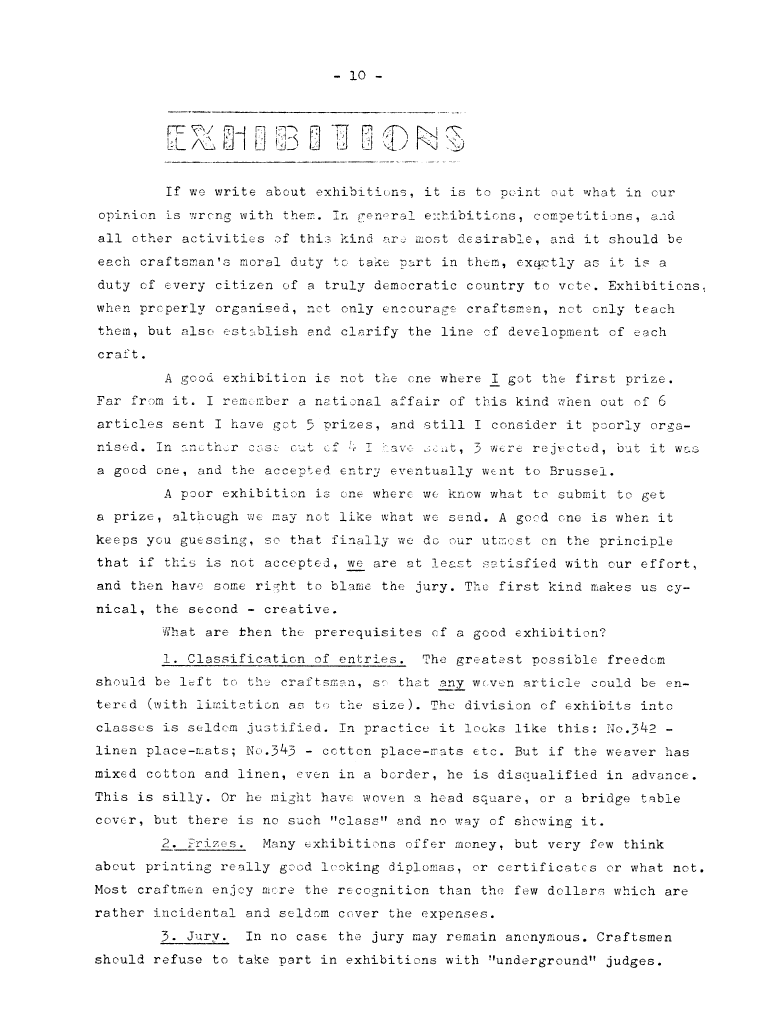 Exhibitions, ---. Master Weaver, No. 39 May 1958, 3 pages. Note: PDF provided by Judith Combs. By permission. Posted July 15, 2006. SAMPLE PAGE. File size 591 KB PDF