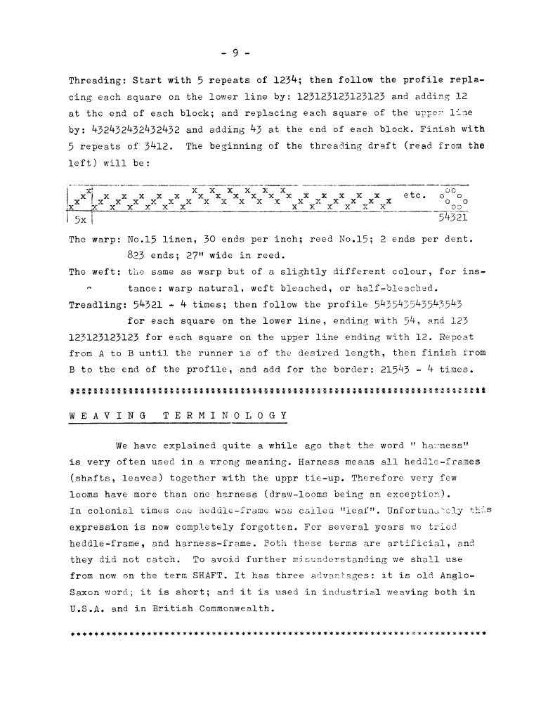 Weaving Terminology - Harness, Shaft, ---. Master Weaver, No. 40 July 1958, 1 page. Note: PDF provided by Judith Combs. By permission. Posted July 15, 2006. SAMPLE PAGE. File size 458 KB PDF