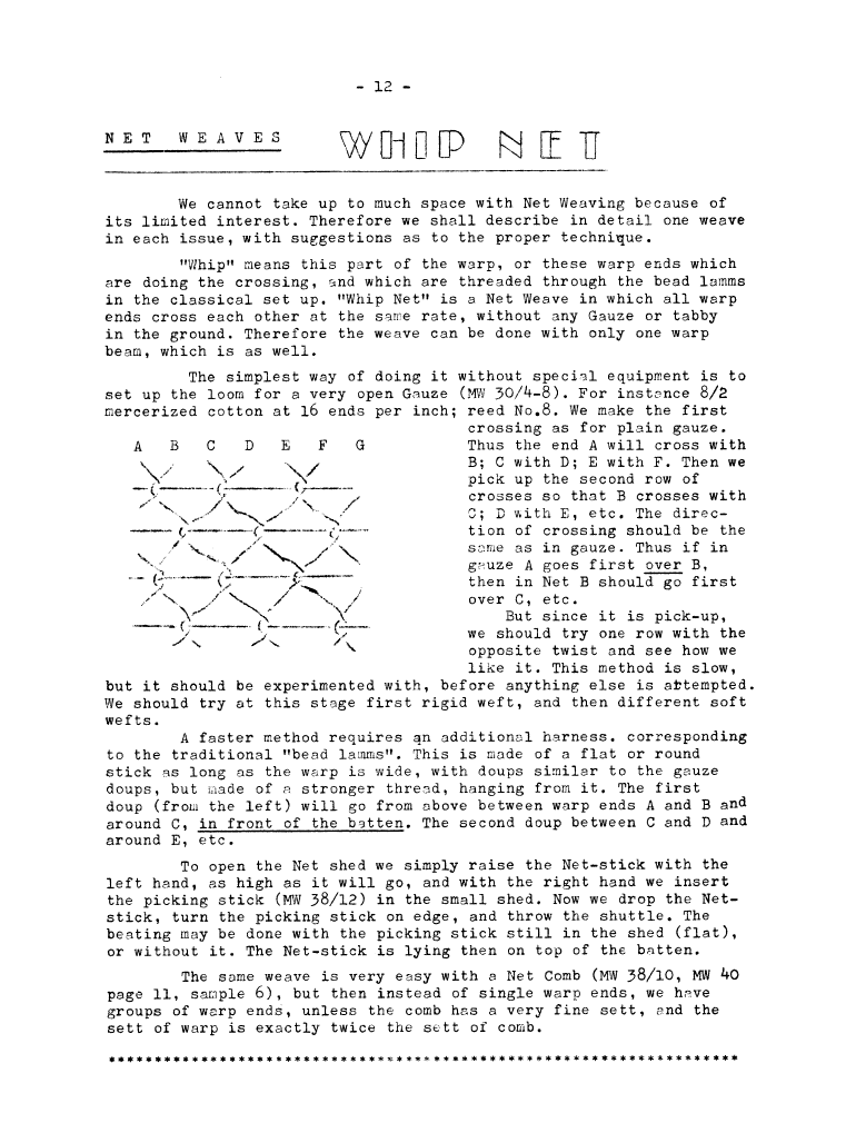 Cross-Weave, ---. Master Weaver, No. 30 November 1956, 5 pages. Note: PDF provided by Judith Combs. By permission. Posted July 15, 2006. SAMPLE PAGE. File size 828 KB PDF
