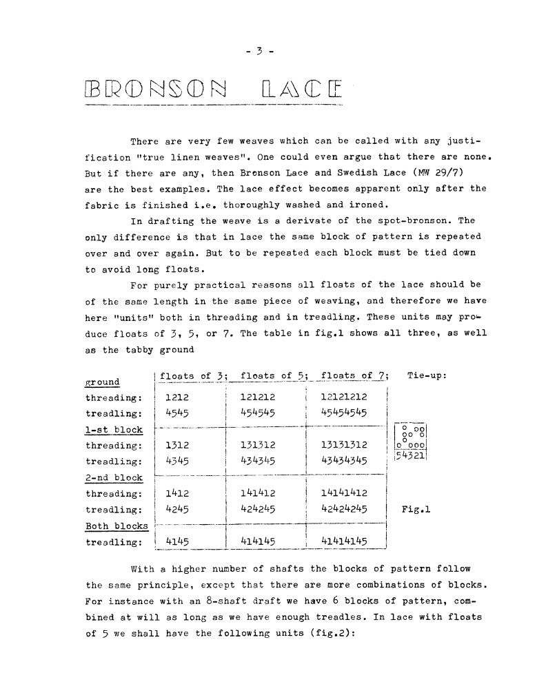 Bronson Lace, ---. Master Weaver, No. 54 November 1960, 3 pages. Note: PDF provided by Judith Combs. By permission. Posted July 15, 2006. SAMPLE PAGE. File size 636 KB PDF