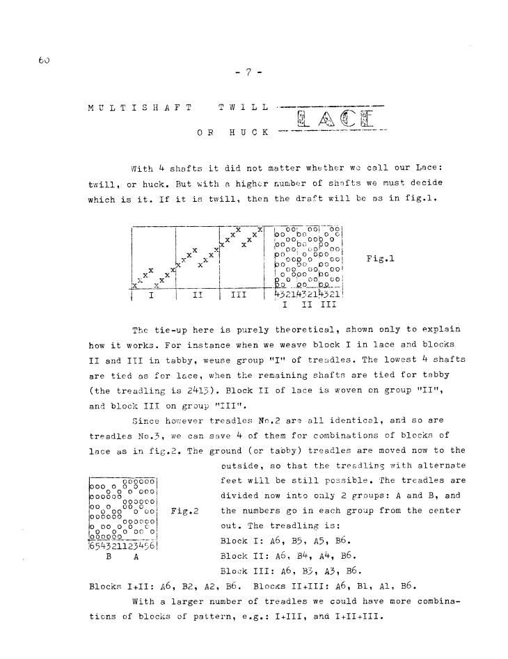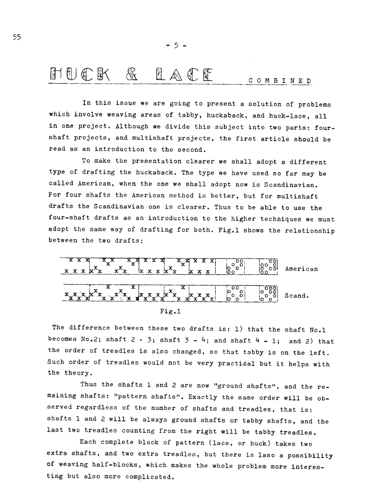 Huck & Lace Combined, ---. Master Weaver, No. 55 January 1961, 7 pages. Note: PDF provided by Judith Combs. By permission. Posted July 15, 2006. SAMPLE PAGE. File size 920 KB PDF
